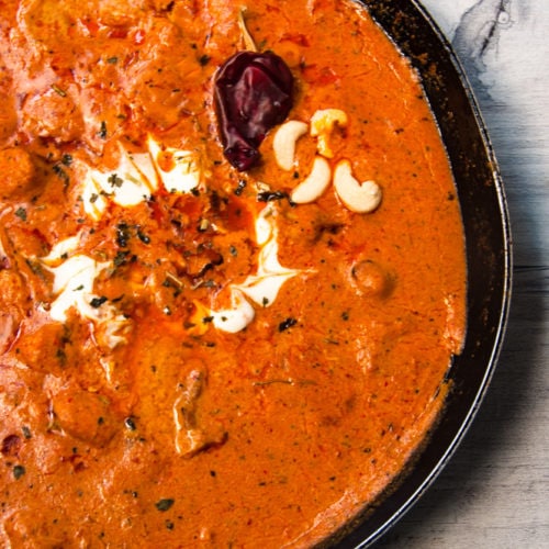 This thick curry is made with pan fried chicken pieces, cooked with all the lovely Indian spices and finished with a generous serving of velvety cream to give this dish its signature silky texture.