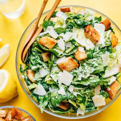 Made with fresh, crunchy lettuce, bell peppers, olives, tomatoes and cucumbers, topped with sliced of chicken and crispy crouton cubes.