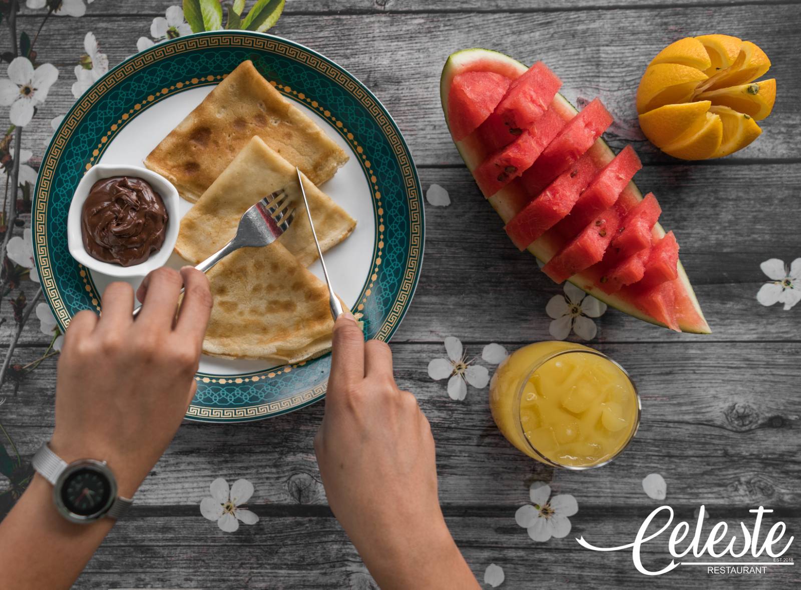 Served with . Cuts of Fruit, Tea or Coffee
